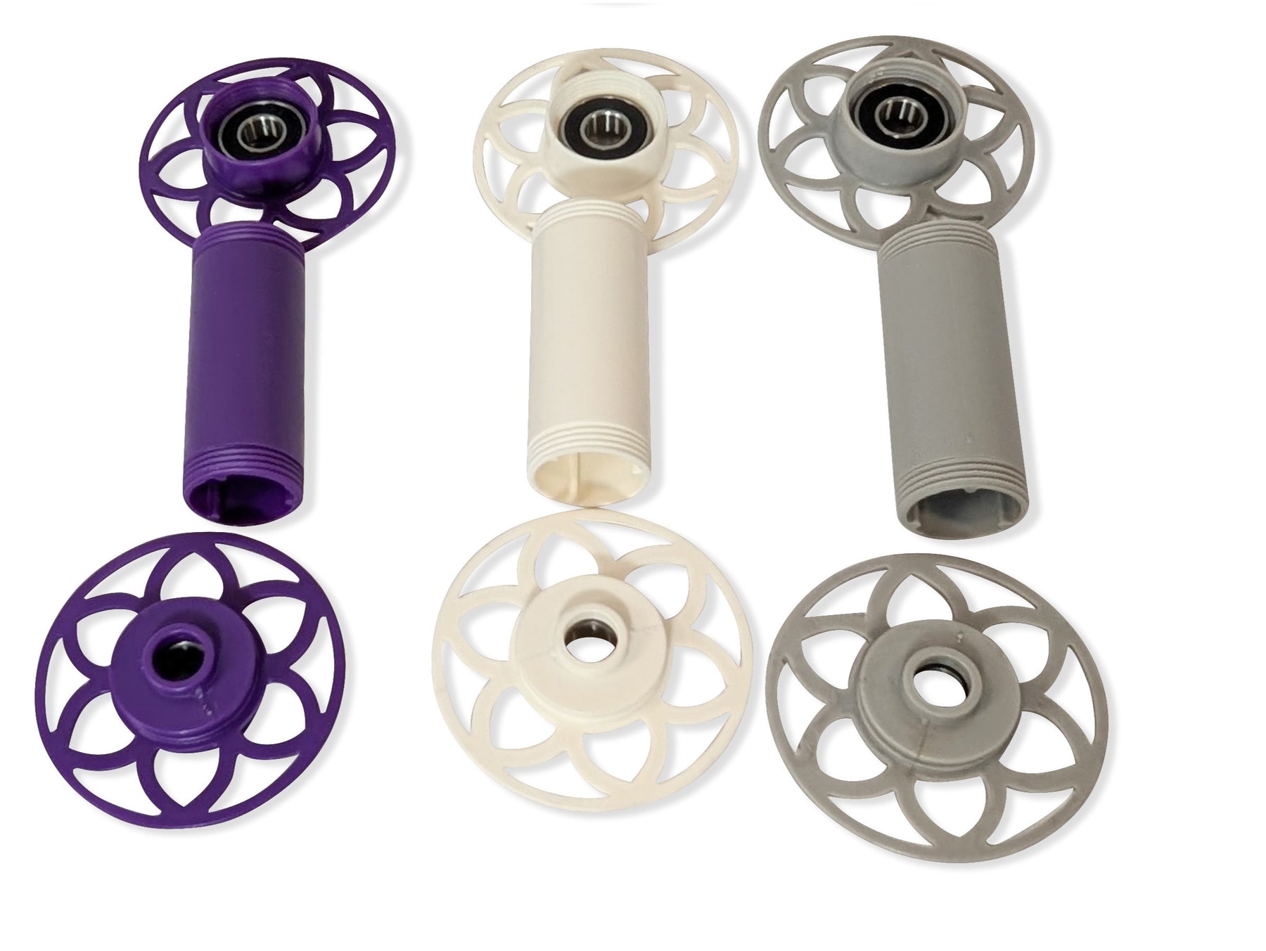 This is a set of three bobbins for the EEW Nano 2.1. They come disassembled and you just screw them together. These bobbins hold around 2 ounces each.